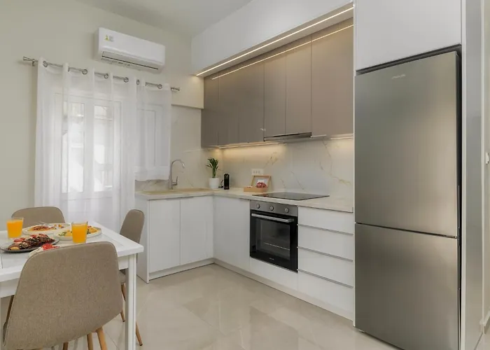 Das Apartment Sugardustapt Elegant Retreat 150M From The Sea ist mit einer voll ausgestatteten Küche ausgestattet, die einen Wasserkocher, einen Kühlschrank und Küchenutensilien enthält, um Ihren Komfort zu gewährleisten. Die Bushaltestelle Agiou Nektariou liegt circa 5 Gehminuten entfernt.